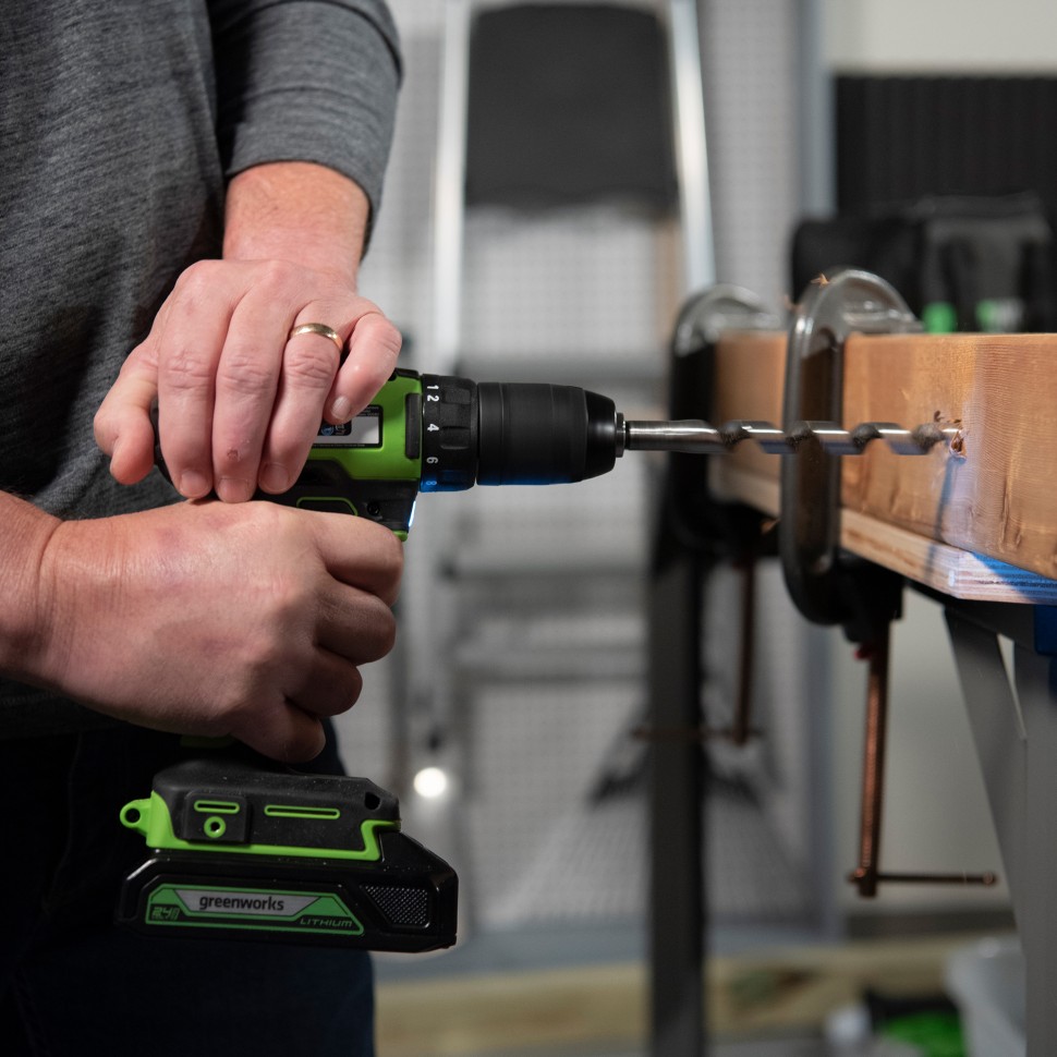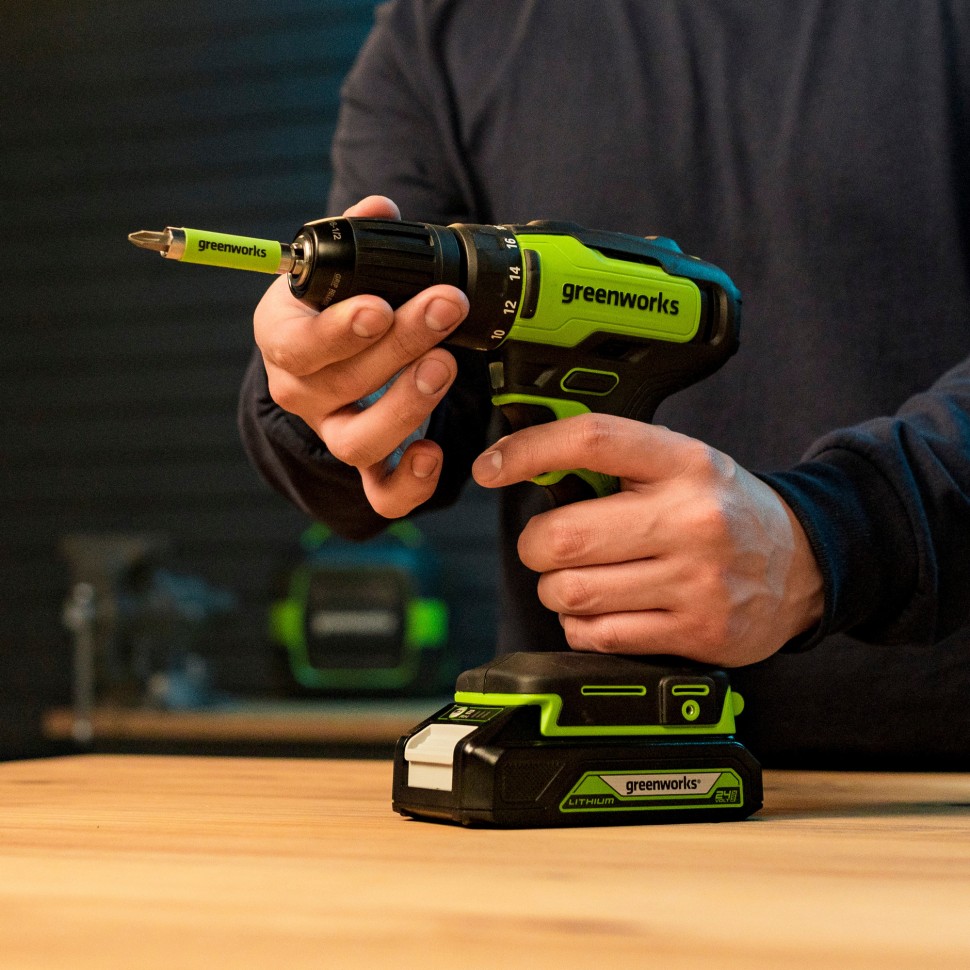 Аккумуляторная дрель-шуруповерт Greenworks G24DD 24V — предназначена для бытового применения, но способна справиться и с более сложными профессиональными задачами. Напряжение применяемого аккумулятора 24V - это на 33% мощнее 18V аналогов, а главное этот аккумулятор совместим еще с 40+ устройствами. Максимальный крутящий момент 35 Нм.