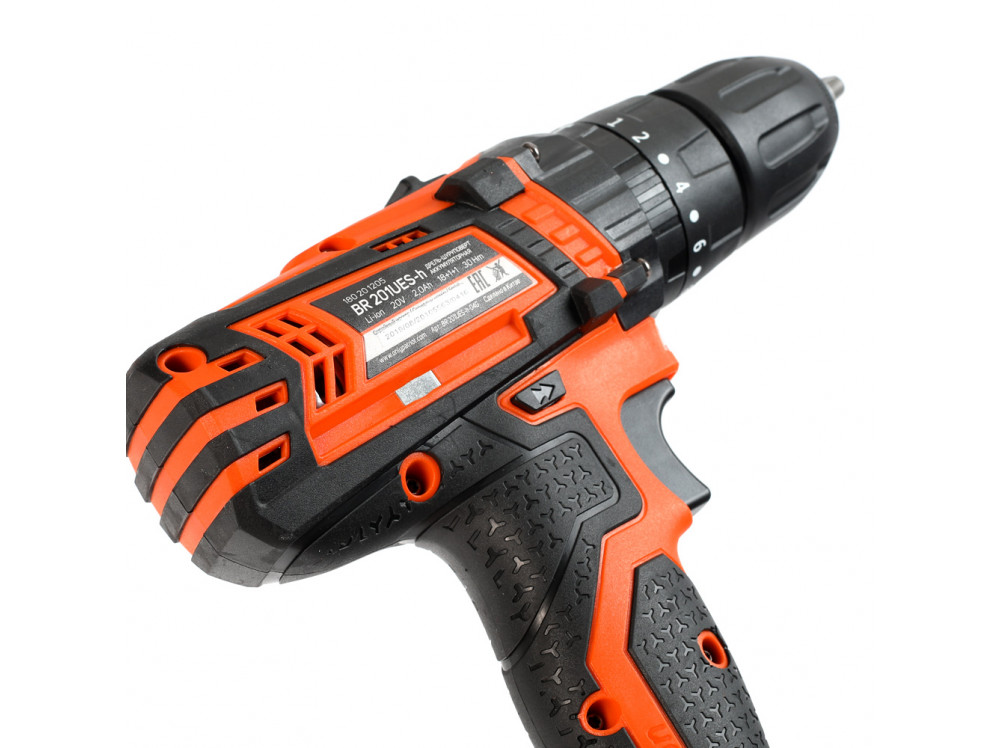 BR 201UES-h - ударная дрель-шуруповерт предназначена для работы на строительных площадках и в автомастерских. Износостойкие металлические шестерни редуктора обеспечивают высокий ресурс шуруповерта. Функция удара, поможет сделать отверстия в кирпичной кладке и лёгком бетоне. Для комфортной работы рукоятки покрыты прорезиненными накладками ExtraGrip. Двусторонняя подсветка улучшает видимость в рабочей зоне. Магнитный держатель не даст потерять биты и сверла во время работы – их можно хранить на корпусе шуруповерта.
