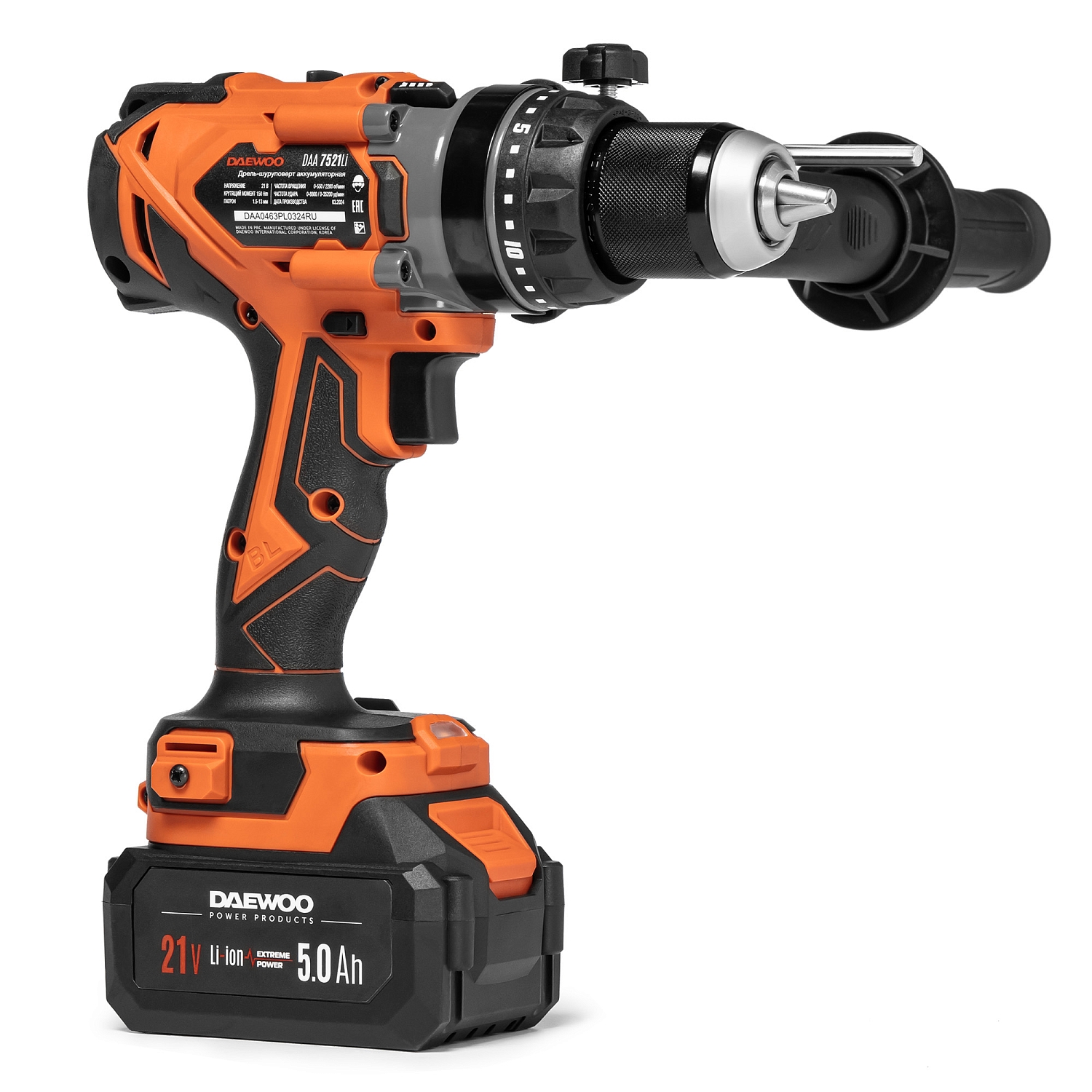 Дрель-шуруповерт аккум. DAEWOO DAA 7521Li SET (21В,2АКБ Li-Ion,5,0 и 4,0А/ч150Нм, метал.патрон13мм)