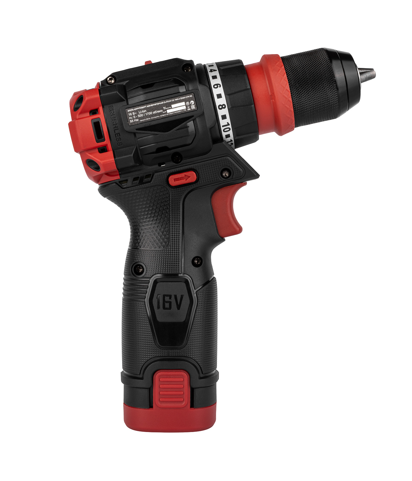 Артикул 214225 Частота вращения шпинделя, об/мин: 0-500 / 0-1700 Тип аккумулятора: Li-Ion Емкость аккумулятора, А*ч: 2,0 Тип двигателя: бесщеточный (BL) Число скоростей: 2 Наличие удара: нет Тип патрона: Быстрозажимной/Hex 1/4' Мах крутящий момент, Нм: 55 Наличие подсветки: есть Бренд: ELITECH HD Количество ступеней, шт: 20 ступеней крутящего момента Базовая единица шт Напряжение заряжаемых аккумуляторов, В: 16 Реверс: есть Параметры упакованного товара