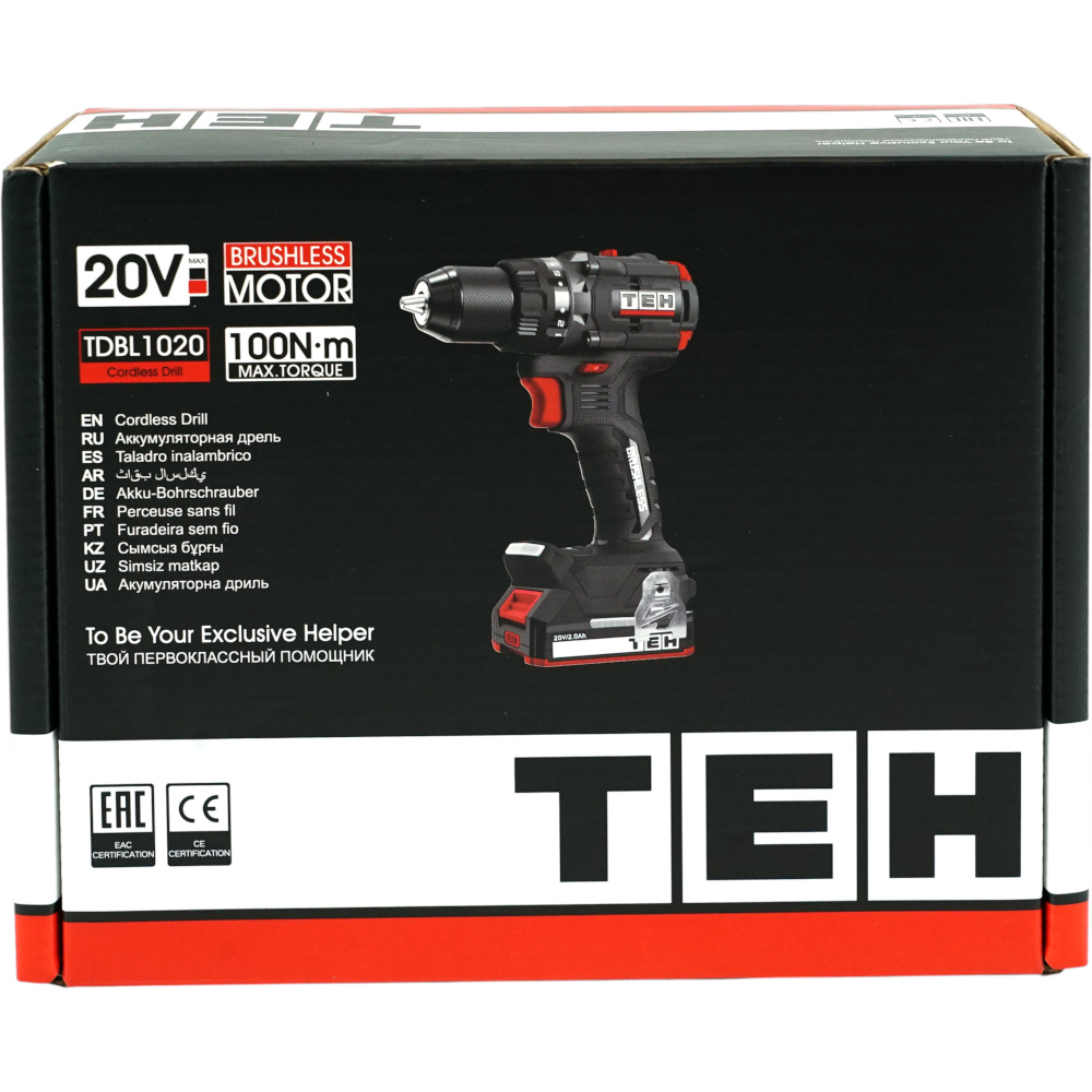 Шуруповерт аккум.TEH TDBL1020 (20V, 0-500/2100об/мин, 100Нм, БЗП 13мм, без АКБ и ЗУ, кор)