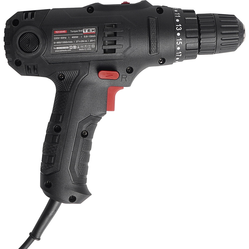 Дрель-шуруповерт сетевая TEH TD1004S предназначена для установки крепежа, сверления отверстий в черных и цветных металлах, дереве и производных матери...