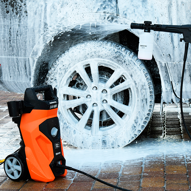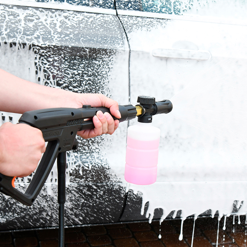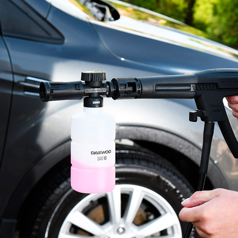 Подключается в качестве насадки на пистолет, входящий в комплект мойки высокого давления -