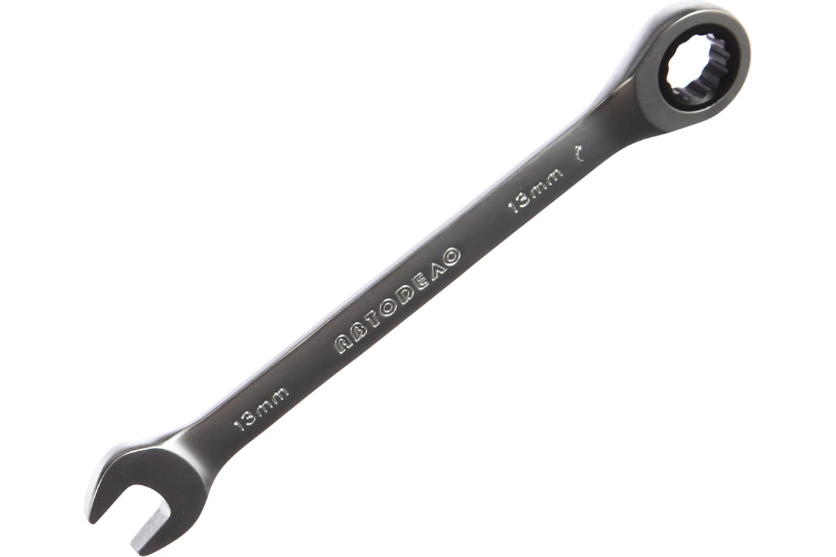 Комбинированный трещоточный ключ 13 АвтоDело 30013 10813 с эргономичной накидной головкой подходит для работы с крепежом на длинной резьбе.