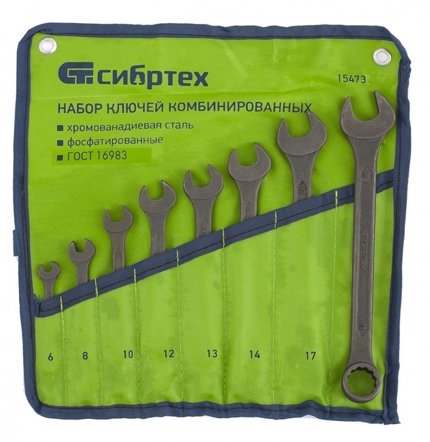 Набор ключей комбинированных 8 пр. (6-19мм) CrV фосфатированные Сибртех