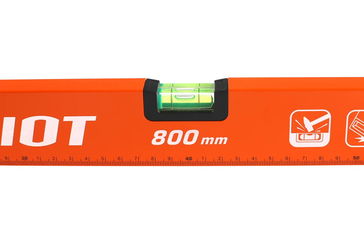 Уровень строительный LRP-800 длиной 800 мм для определения отклонения плоскости относительно горизонтали или вертикали с точностью до 1 мм/м. Корпус выполнен из алюминиевого сплава, устойчивого к коррозии. Торцы заглушки обеспечивают устойчивость к деформациям при падании.