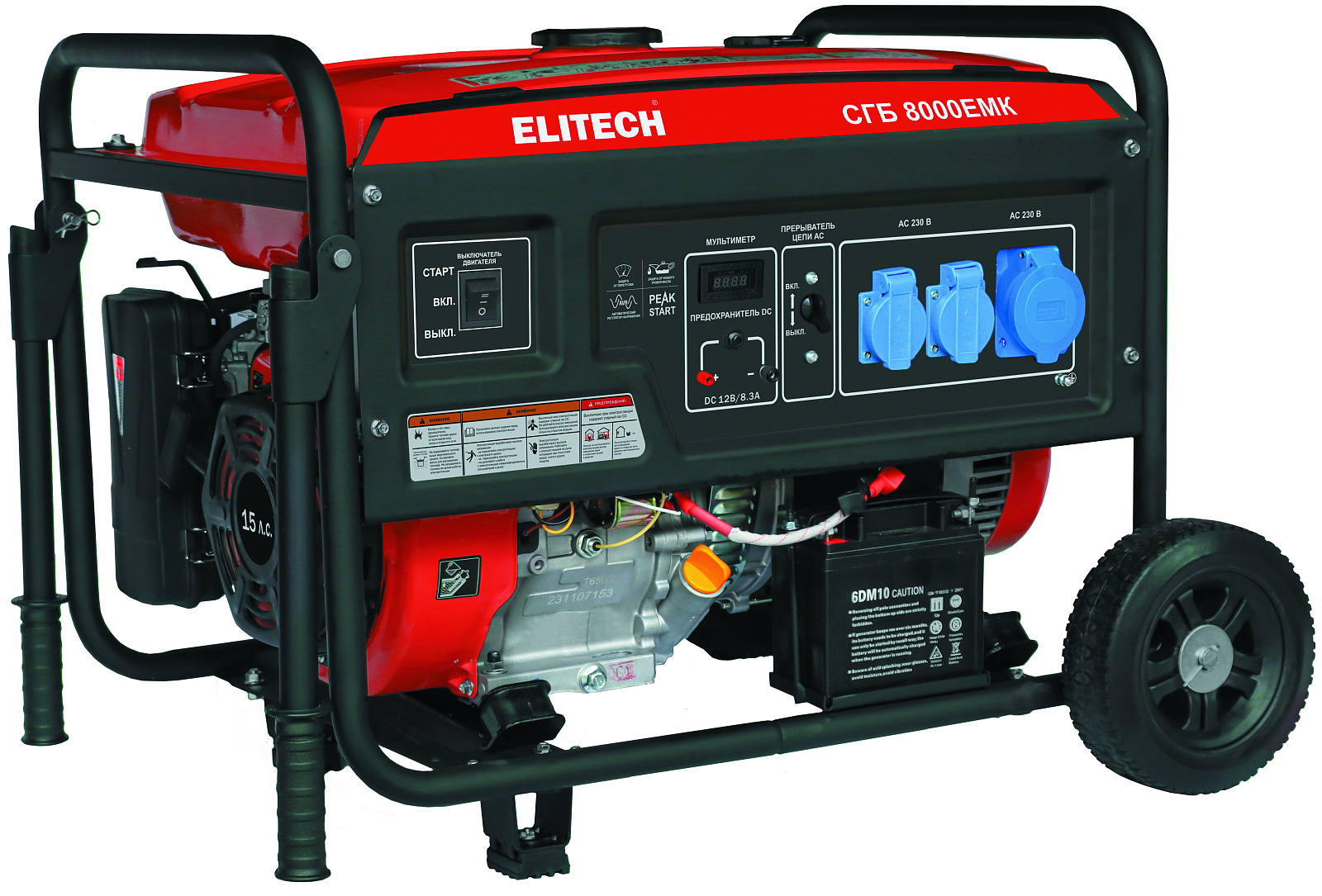 Электростанция СГБ 8000 ЕМК с четырехтактным бензиновым двигателем. Однофазная. Номинальная мощность 6 кВт. Две розетки 220В/16А. Одна розетка 220В/32А. Электростартер.