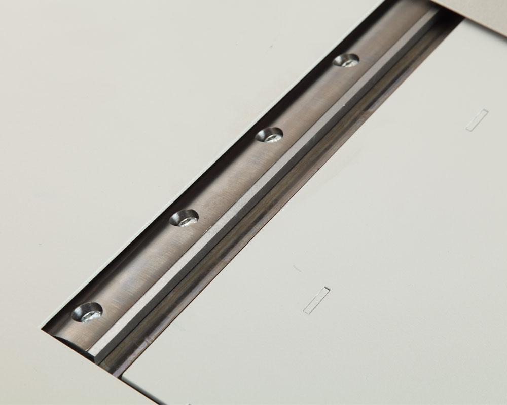 Безопасная эксплуатация. Прозрачный кожух станка Белмаш Могилев 2.4 СДМЛ-2400 исключает вылет отходов пиления в глаза оператора.