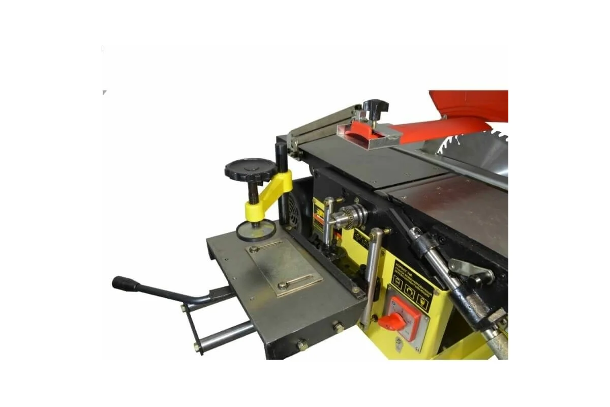 Комбинированный станок Энкор Корвет-320 93200 - это универсальный агрегат для реализации целого ряда задач по деревообработке. Станок выполняет строгание с направляющей, продольное и поперечное пиление с регулировкой вылета пильного диска и подвижным столом с упором и градусной шкалой, сверление отверстий и некоторые операции, связанные с фрезеровкой. Станок можно подключить к пылесосу, что делает работу более аккуратной. Небольшие габариты позволяют разместить его в тесных помещениях. Асинхронный двигатель и ременная передача создают низкий уровень шума.