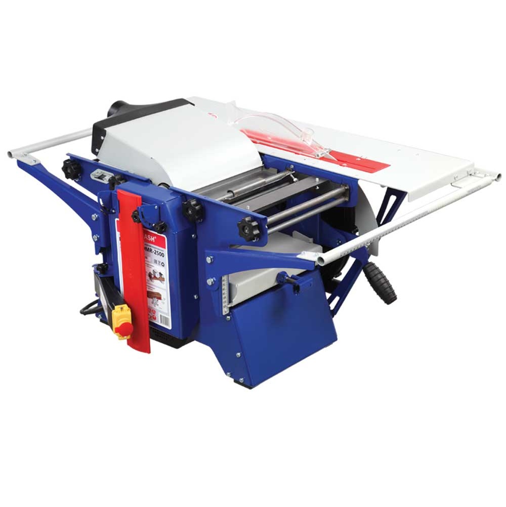 Деревообрабатывающий станок многофункциональный Белмаш SDMR-2500 используется для универсальной обработки деревянных заготовок. Основные функции изделия: распиловка, строгание, рейсмусование, фрезерование. Небольшие размеры позволяют использовать оборудование в домашних мастерских и на производствах без подключения к силовым линиям 380 В. Комплектация включает в себя необходимое оборудование для проведения работ всех видов. Настольная конструкция обладает необходимым весом и жесткостью, чтобы справляться с вибрацией при работе. Распиловку можно вести под углом до 45 градусов. Для пиления предусмотрен рабочий стол размерами 827х528 мм. Габариты стола для строгания составляют 912х284 мм. При рейсмусовании обеспечивается автоматическая подача заготовки со скорости до 6 метров в минуту. Для фрезерования используются фрезы диаметром 125 мм.