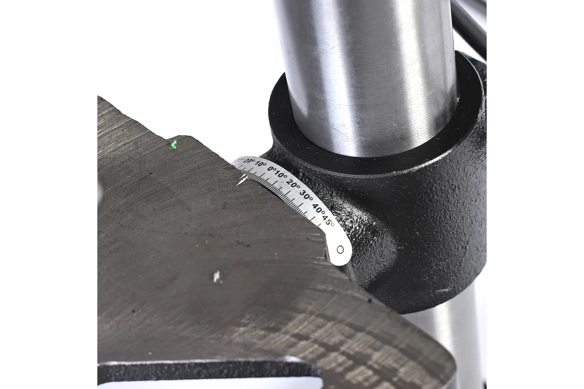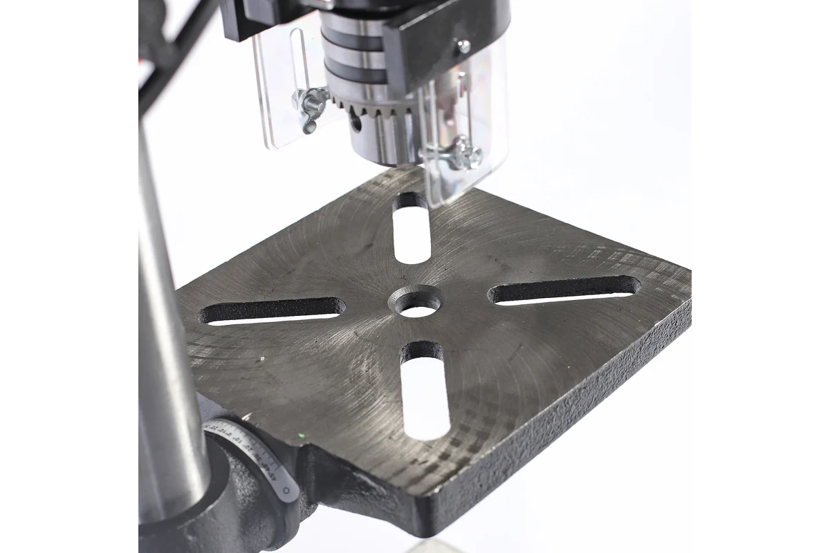 Удобная вращающаяся рукоять позволяет регулировать высоту рабочего стола. Рабочий стол выполнен из чугуна, который отличается высокой прочностью и износостойкостью. -