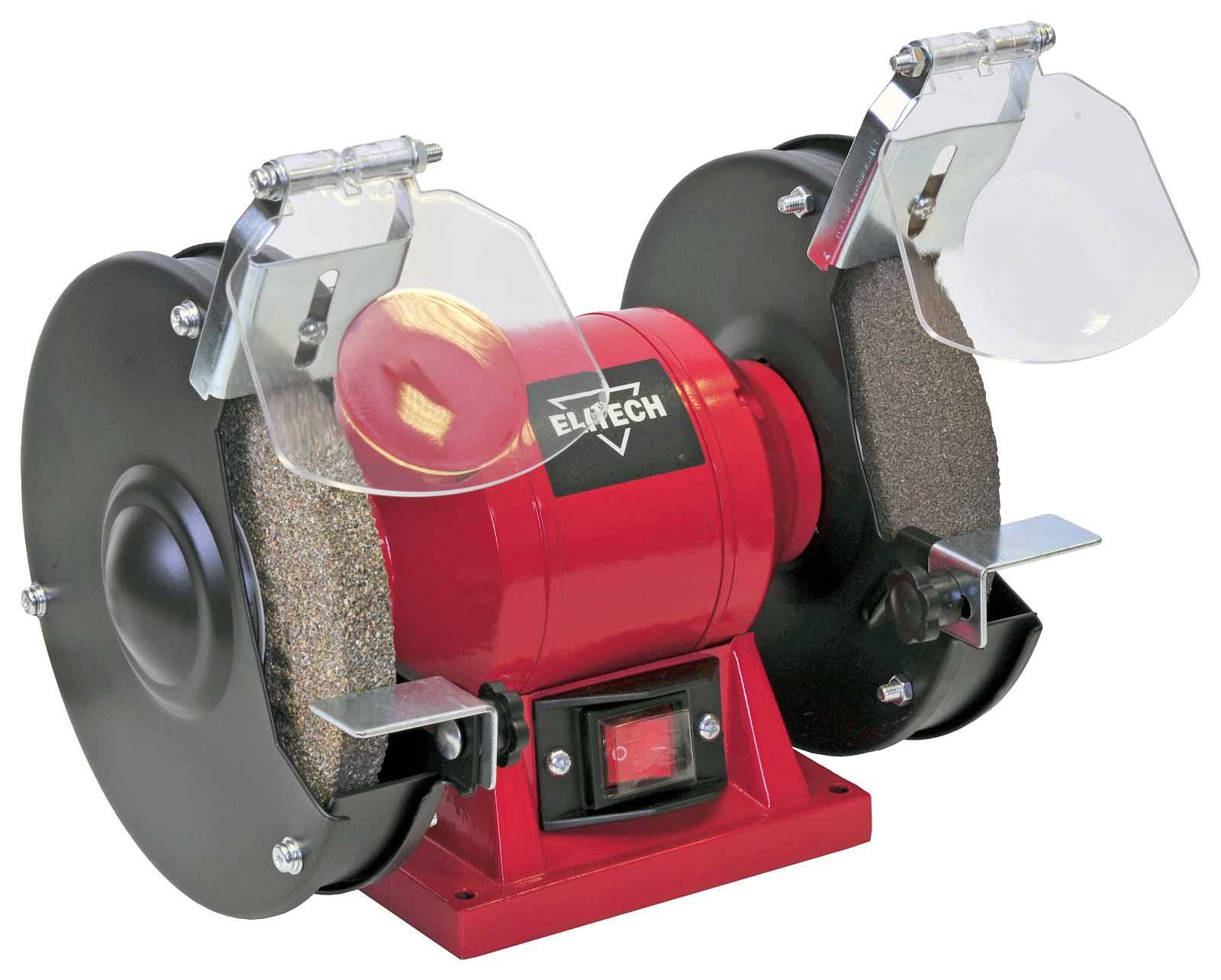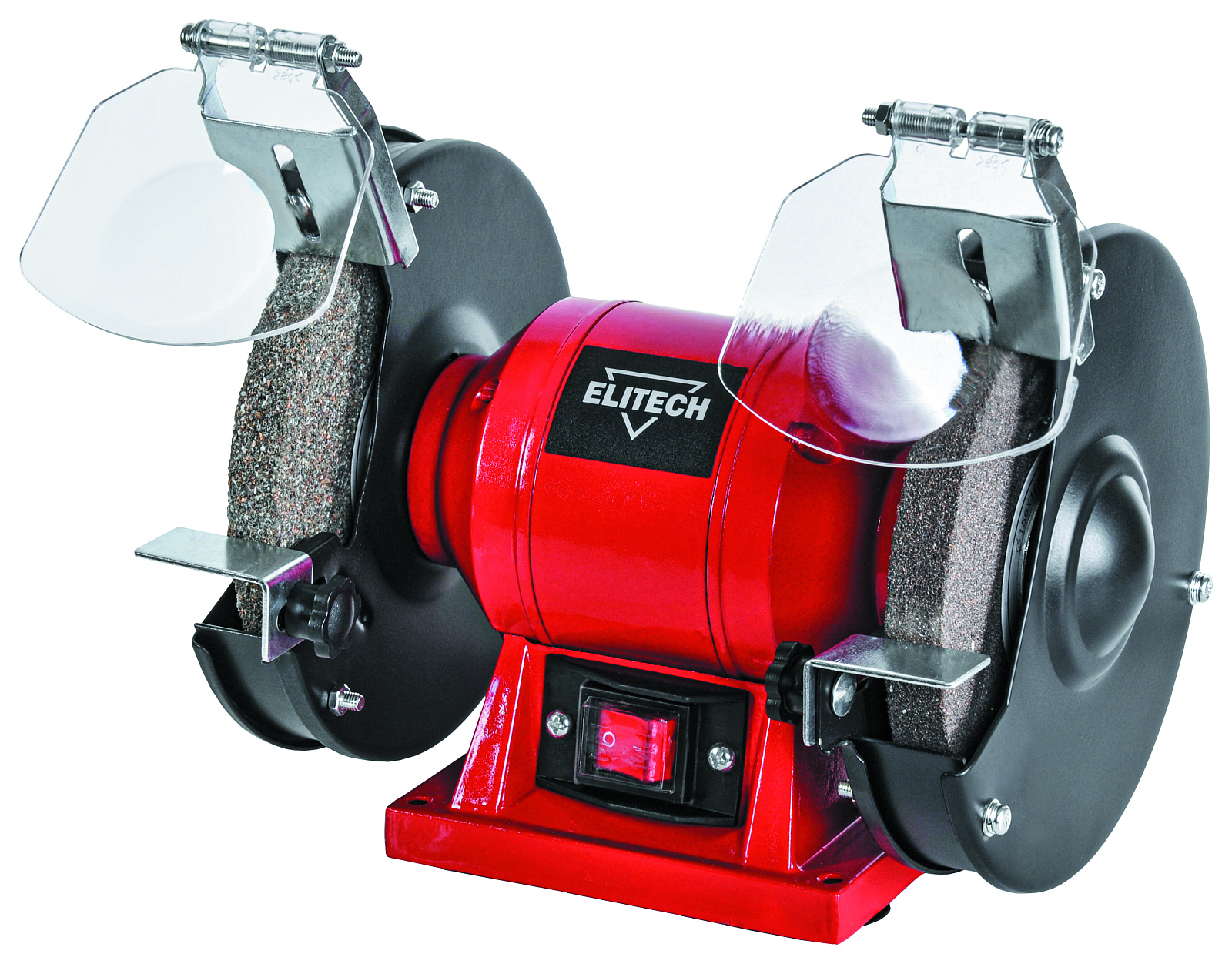 Электрическое точило Elitech СТ 150 (E2013.002.00) мощностью 250 Вт предназначено для обработки шлифованием различных предметов, заточки дерево и металлообрабатывающего инструмента, шанцевого и садового инструмента. Посадка шлифовальных кругов осуществляется через металлические фланцы, что обеспечивает очень низкий уровень вибрации при работе. Диаметр круга 150 мм, толщина 16 мм, посадочный диаметр 12,7 мм. Перед кругами установлены регулируемые упоры для обрабатываемых предметов с пазами для заточки сверл. Открытая часть кругов имеет защиту в виде регулируемого прозрачного экрана, что позволяет защитить пользователя от искр и осколков при работе. В станине есть отверстия для фиксации точила к основанию.