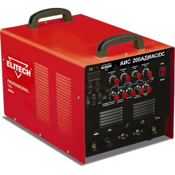 Сварочный инвертор Elitech АИС 200АДИ-AC/DC используется в ручной сварке неплавящимися вольфрамовыми электродами в среде защитного газа (Tungsten ...