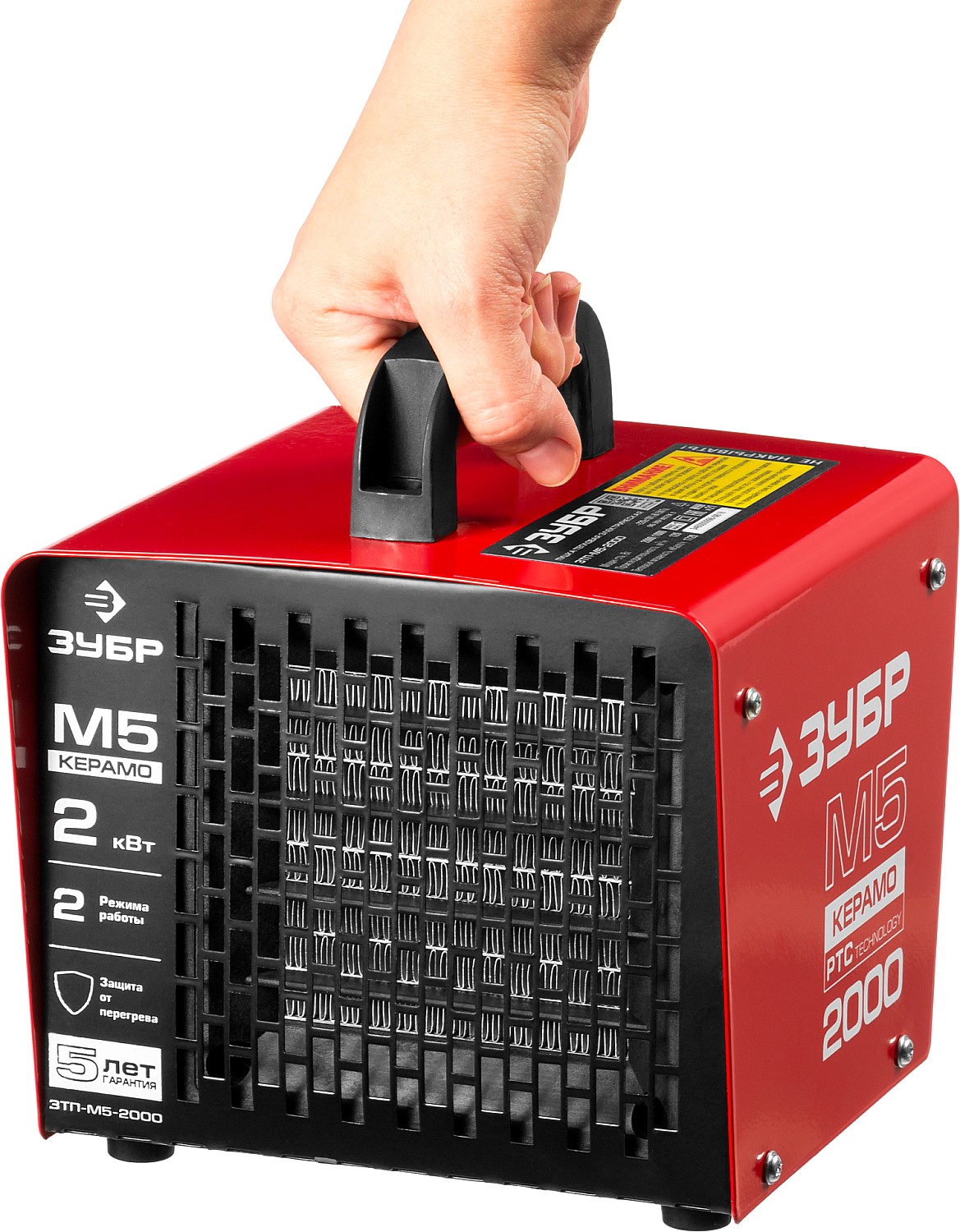 Пушка тепловая ЗУБР ЗТП-М5-2000 – компактное тепловое оборудование с керамическим нагревательным элементом, которое может использоваться в промышленных и бытовых помещениях для быстрого обогрева воздуха, сушки и т.д. Компактная модель облегчает перемещение, хранение и транспортировку оборудования. Мощный силовой агрегат вкупе с вентилятором обеспечивают максимально быстрое распространение теплого воздуха по объекту.