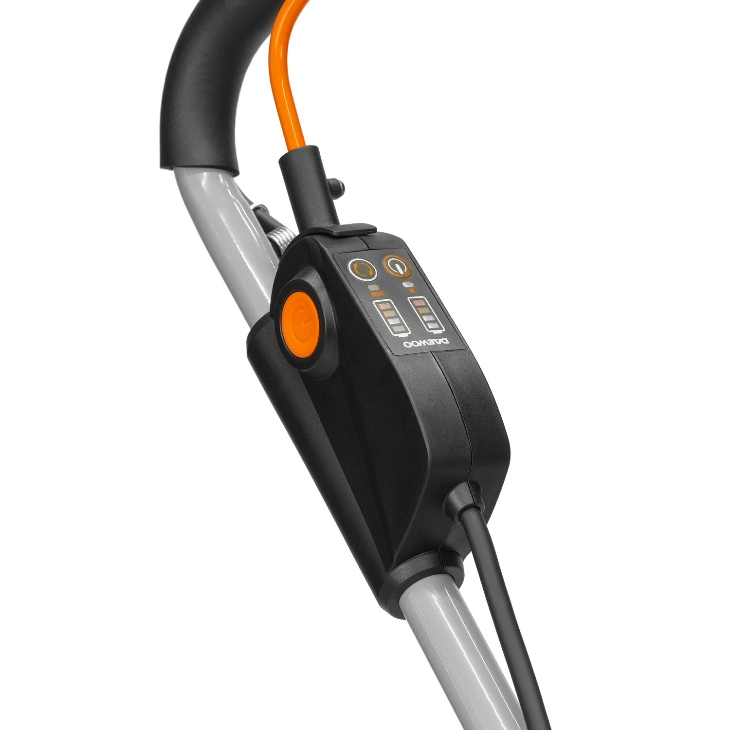 Эргономичная панель на рукоятке управления позволяет включать и выключать газонокосилку и контролировать уровень заряда каждого аккумулятора.